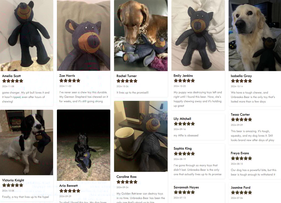 "I’m so tired of buying new toys every few days. The Unbreaka-Bear is holding up perfectly, even though my Rottweiler is a heavy chewer."