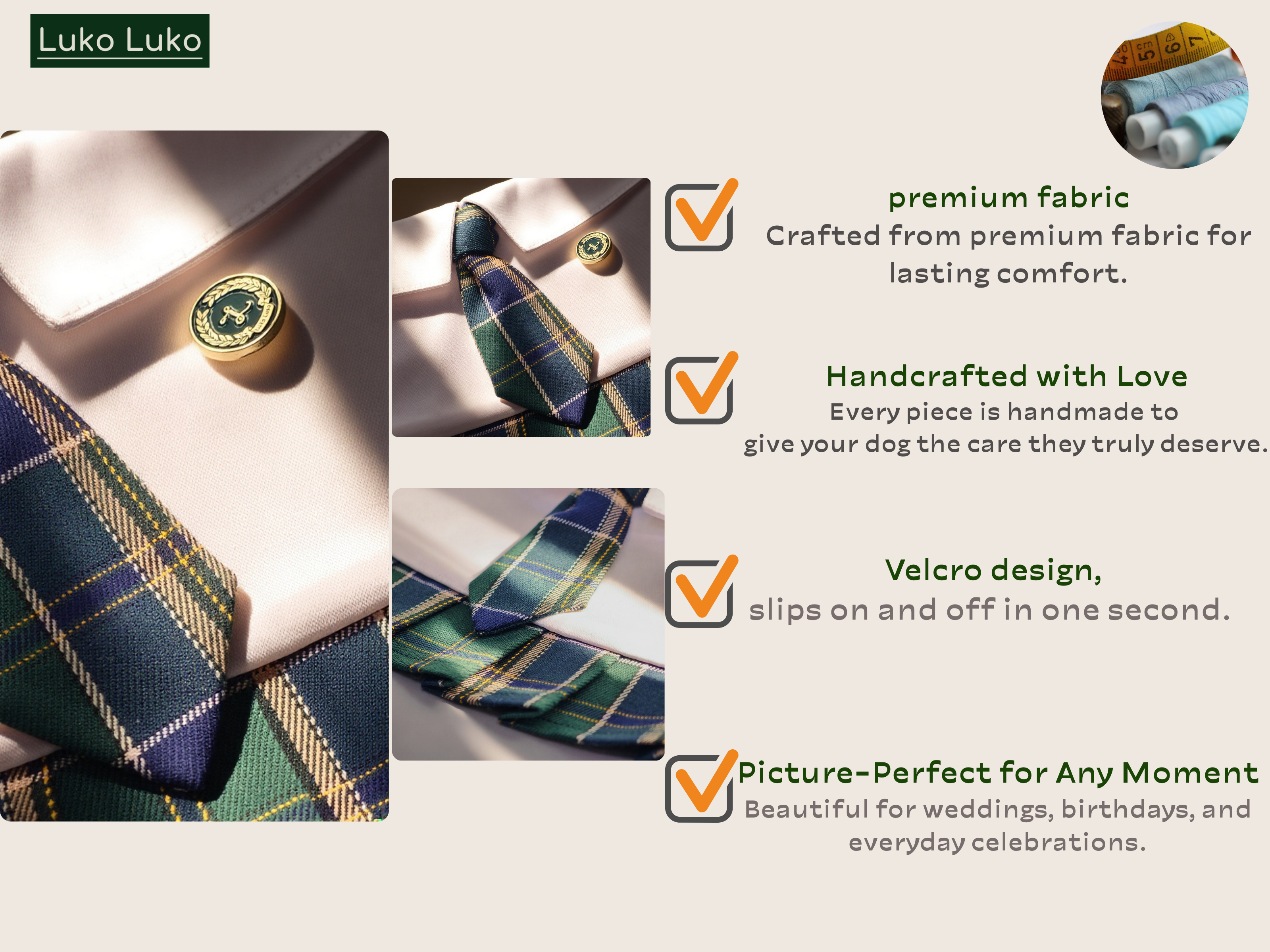 The Emma School Girl Uniform is a delightful addition to any pet’s wardrobe. Handmade for dogs and cats of all sizes, it features a preppy design that’s ideal for events, adorable photos, and casual elegance.