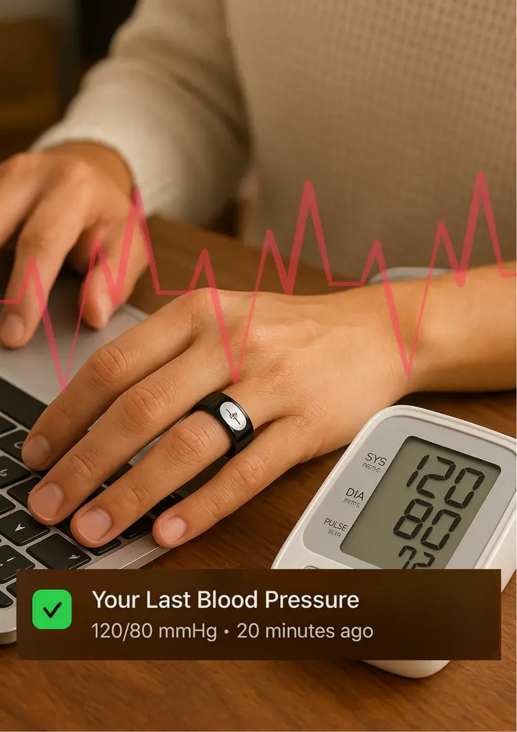 Monitor your blood pressure comfortably and discreetly—no bulky cuffs required. The smart ring uses advanced sensors to deliver accurate, continuous readings straight from your finger.