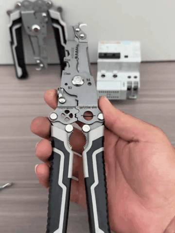 - Drähte abisolieren: Richten Sie den Draht auf das entsprechende Abisolierloch aus, drücken Sie die Griffe zusammen und ziehen Sie vorsichtig, um einen sauberen, beschädigungsfreien Schnitt zu erzielen.