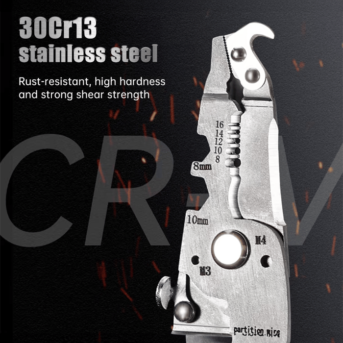 Die präzisen Abisolierlöcher ermöglichen ein sauberes und beschädigungsfreies Abschneiden und Abisolieren von 8-16 AWG-Drähten, so dass jede Aufgabe effizient und professionell erledigt wird.