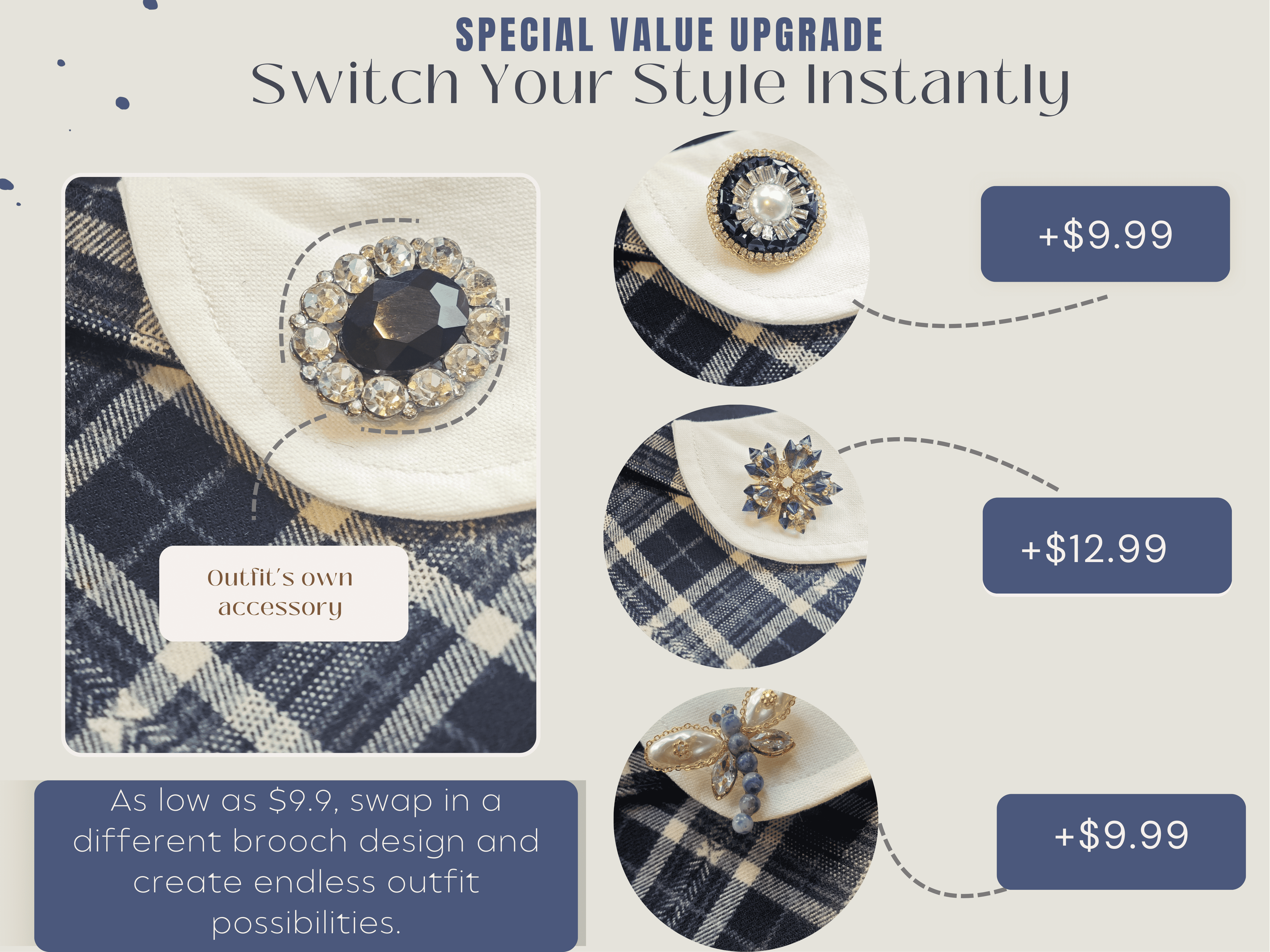 • Detachable design with optional brooch styles available separately