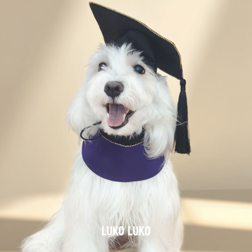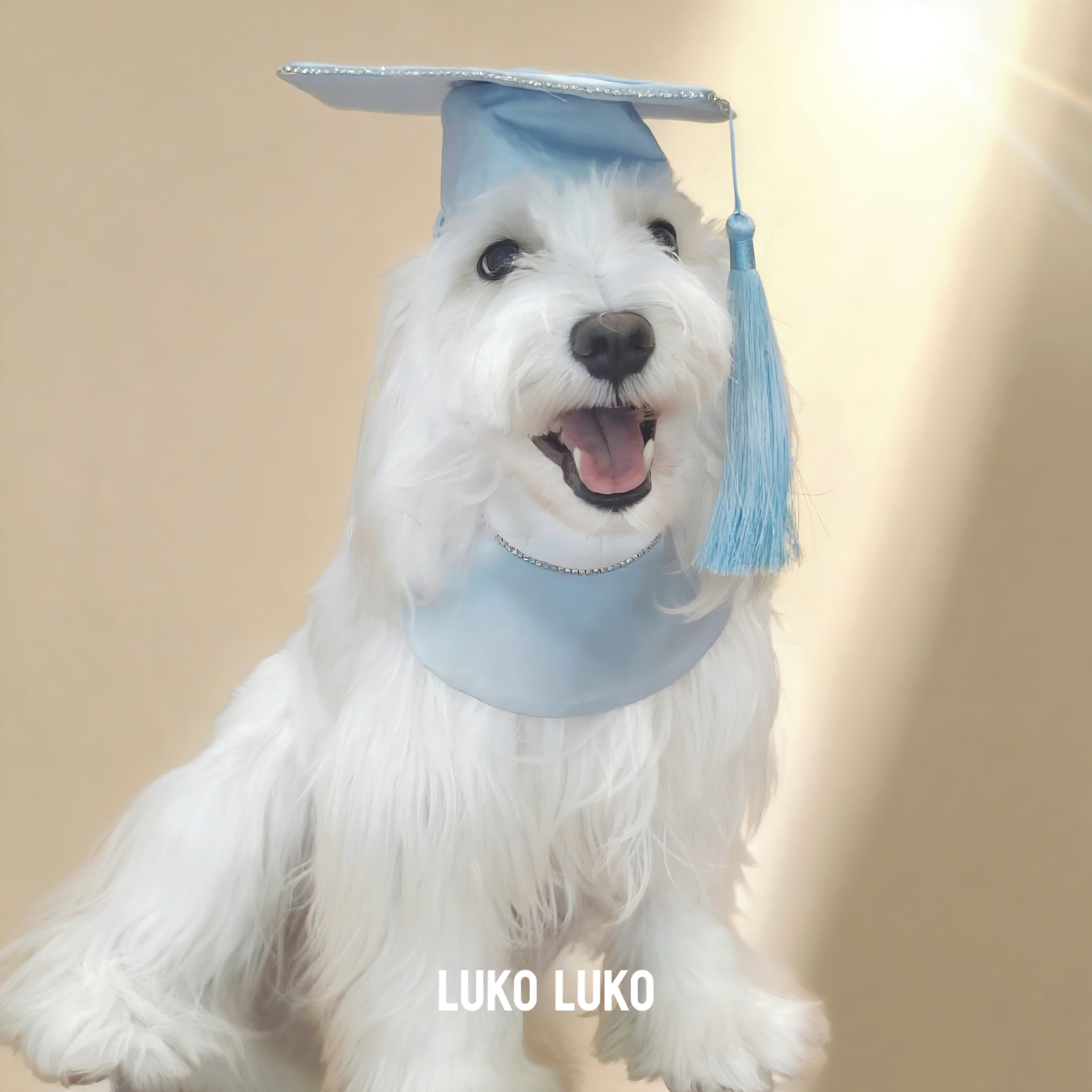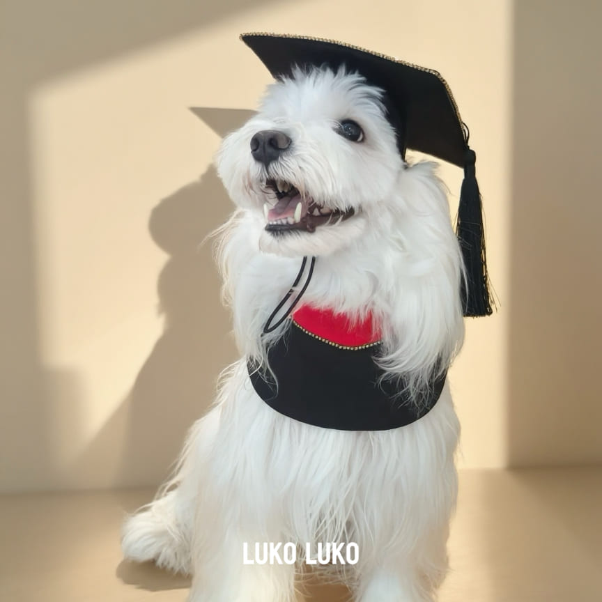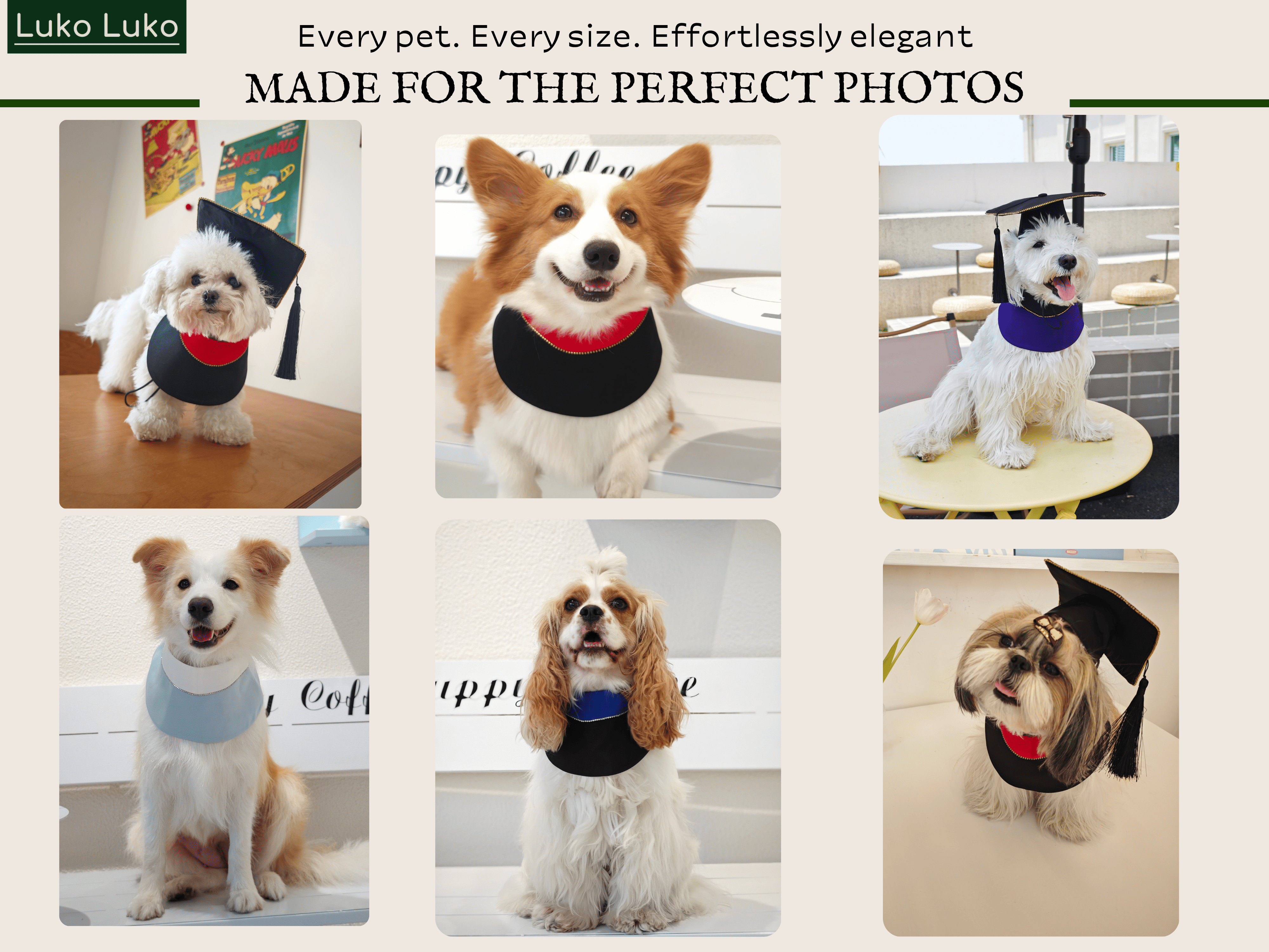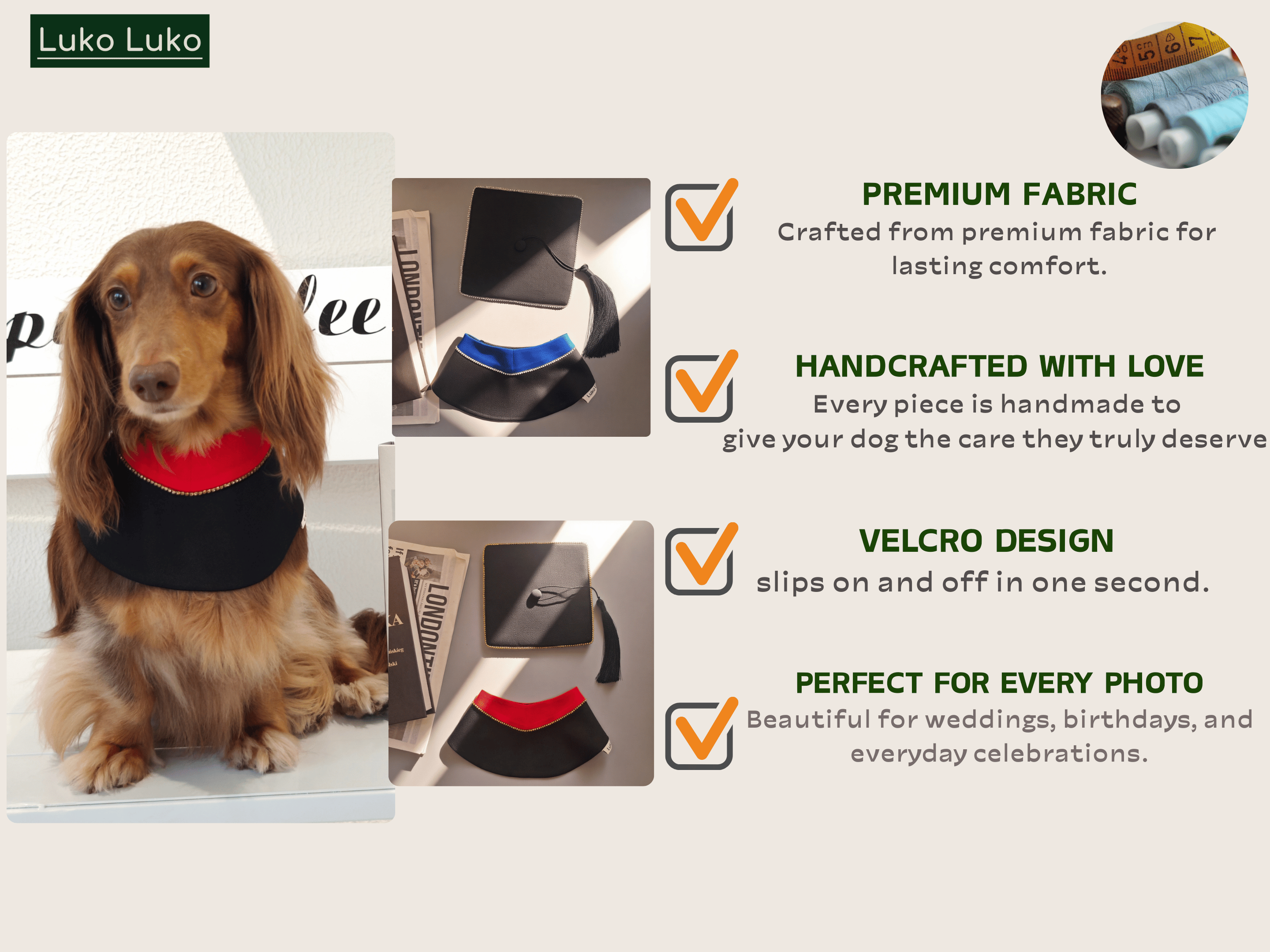 The Graduation Outfit is a charming choice for dogs, cats, and pets of all sizes. Available in classic blue, bright red, and cheerful yellow, each handmade gown brings festive spirit and elegance to your furry friend’s big moment.