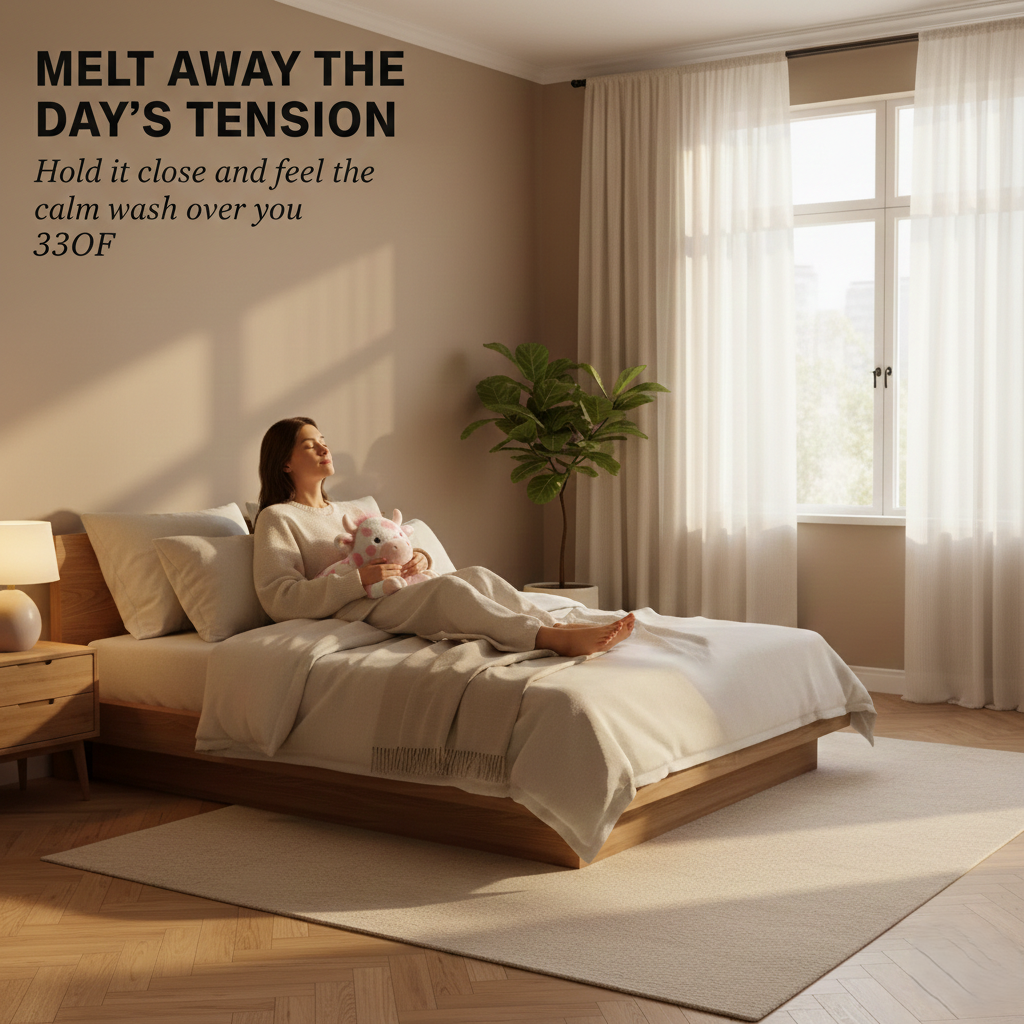 No pills. No apps. No complicated routines. Just a cloud-soft highland cow you hold close, and the tension begins to dissolve.